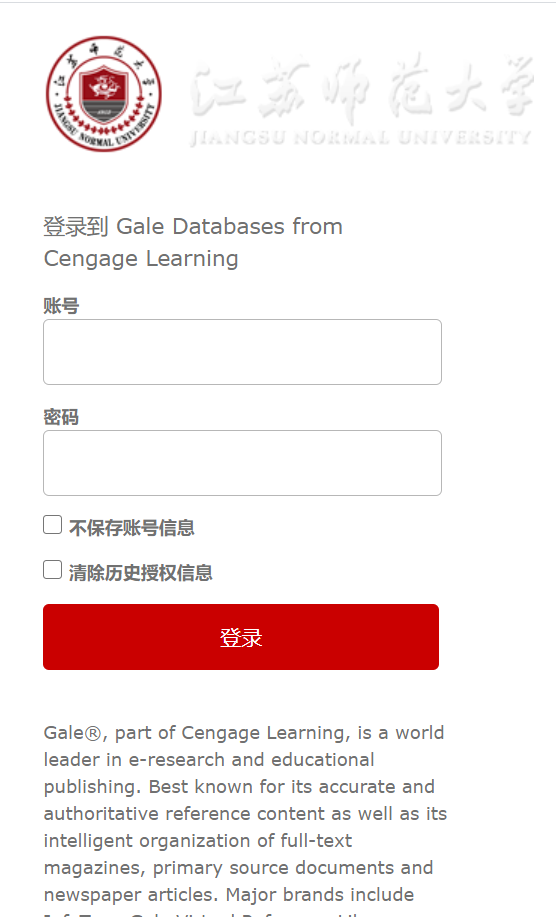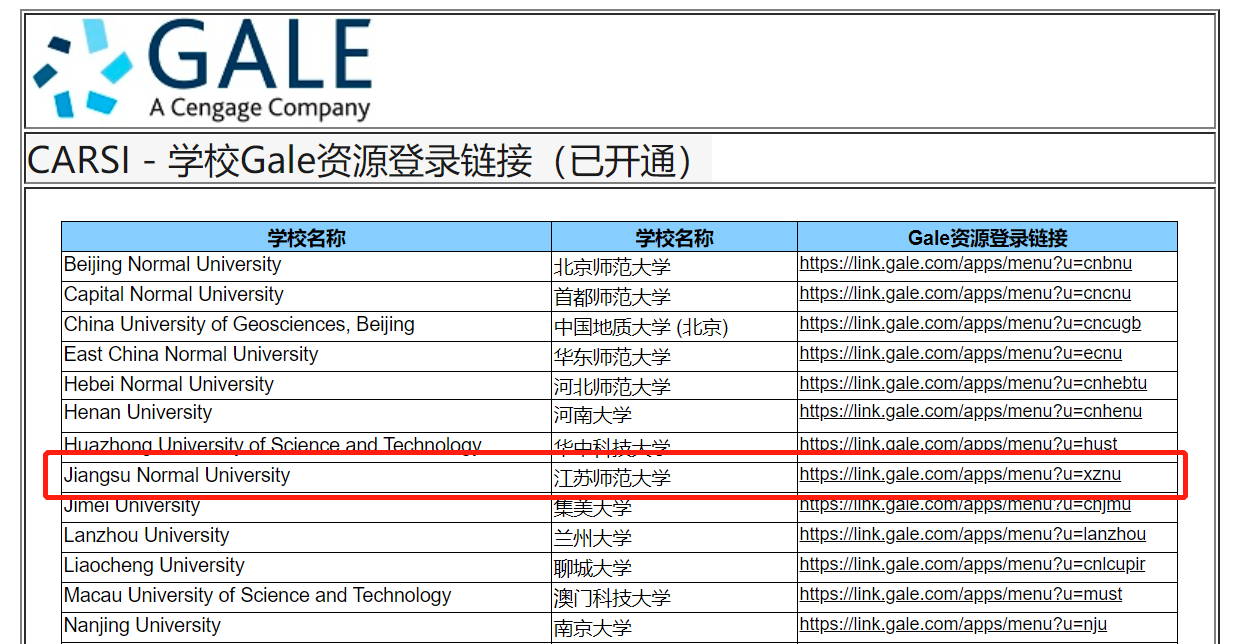 第一步:使用非校园IP浏览器打开https://www.cengageasia.com/gale/carsi/institutions.htm 查阅所在学校的Gale资源登录链接。